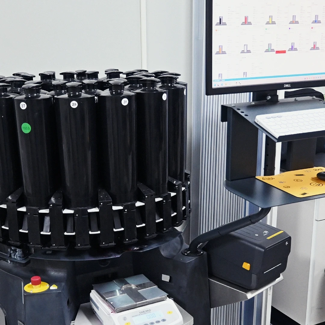 本公司設立專業配墨室,運用分光測色儀進行精準色彩量測與修色,並搭配X-Rite 愛色麗 IFS6 (Ink Formulation) 油墨調色軟體。透過inkmaker小型供墨機模擬印刷色彩,能準確地提供印刷機所需的油墨。此系統有效降低印刷人員的配色工時與材料損耗,同時提升油墨的利用效率,確保穩定的印刷品質。